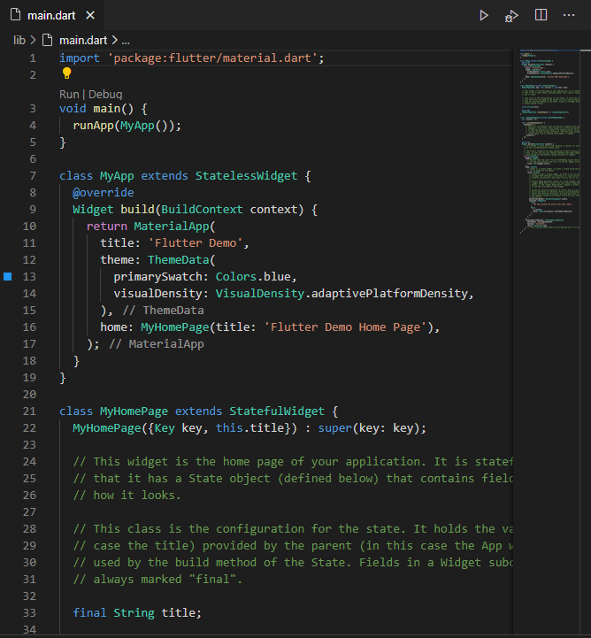 이런식으로 main.dart에 많은 글이 있을텐데.. 모두 다 지우자 !