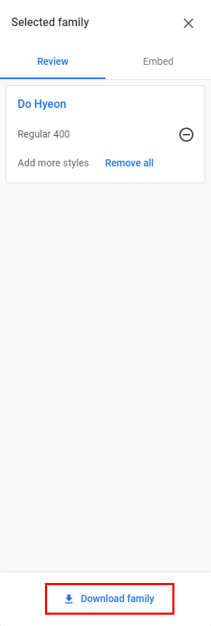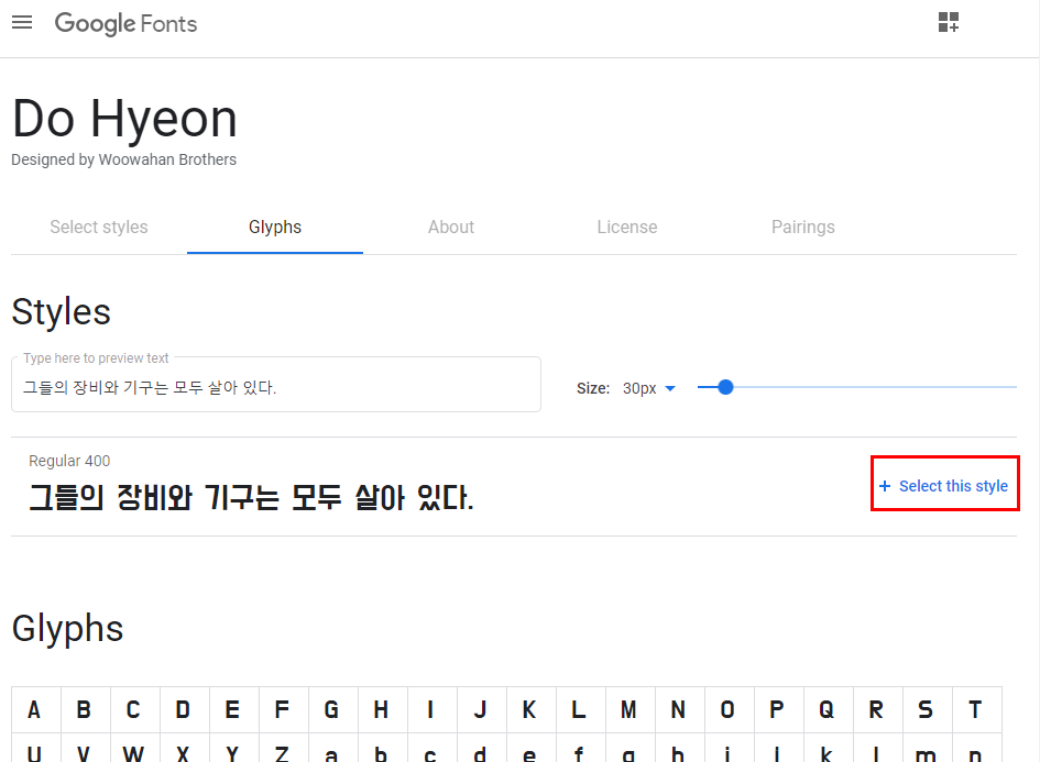 +Select this style을 클릭하고, Download Family를 통하여 Font를 저장해 줍니다.