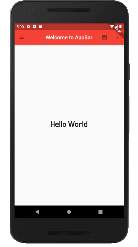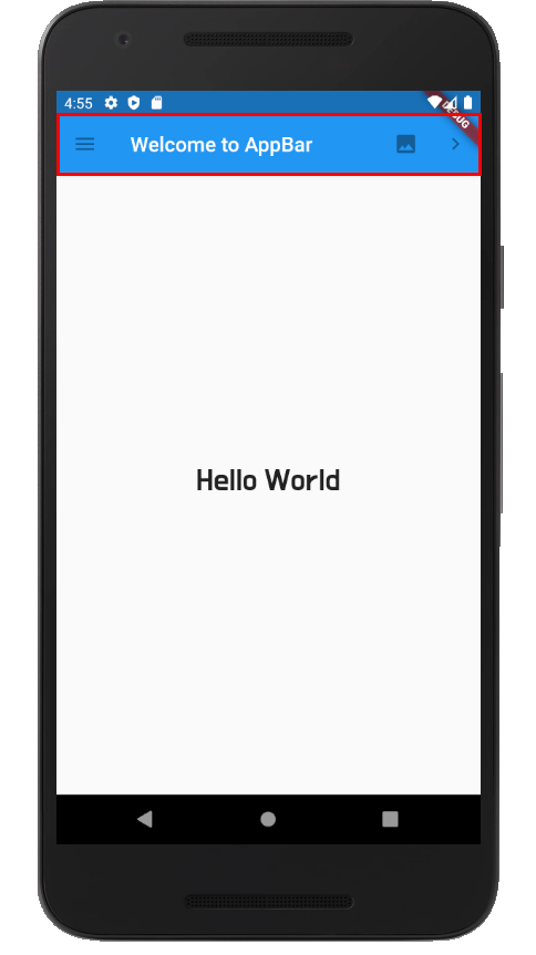 왼쪽부터 leading[Icons.menu], title["Welcome to AppBar"], actions[Icons.image, Icons.navigate_next]를 통해서 추가할 수 있습니다.