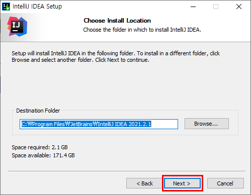 원하는 경로로 지정하고 Next > 클릭