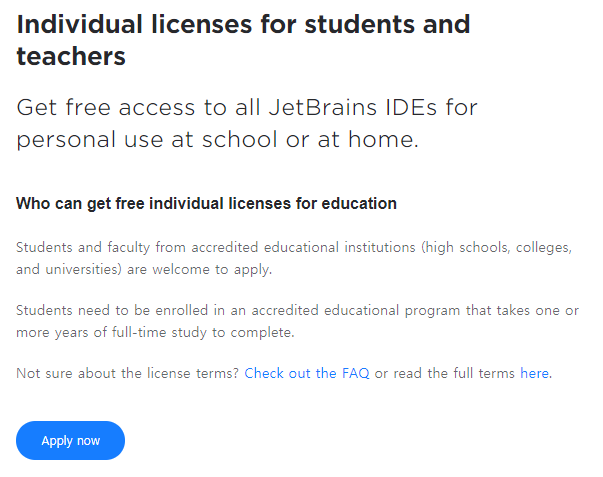 Learn or teach how to code with best-of-industry tools from JetBrains. Free Educational Licenses for JetBrains' tools.