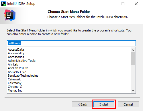 시작에 들어가면 IntelliJ가 설치된것을 확인할 수 있다.
