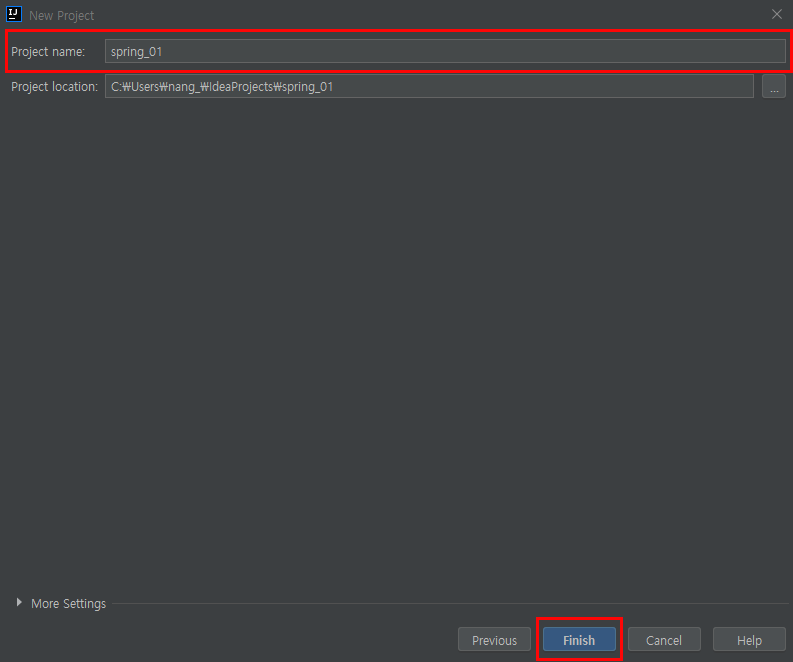 Project name 설정 후 Finsh 클릭 (untitled로 해도 상관없다.)